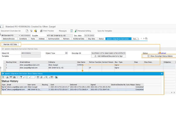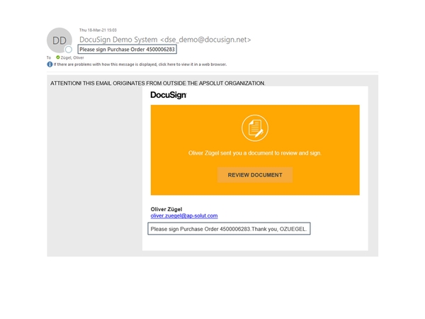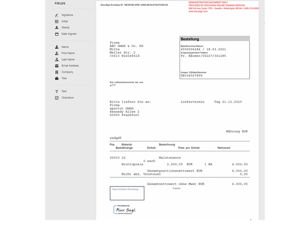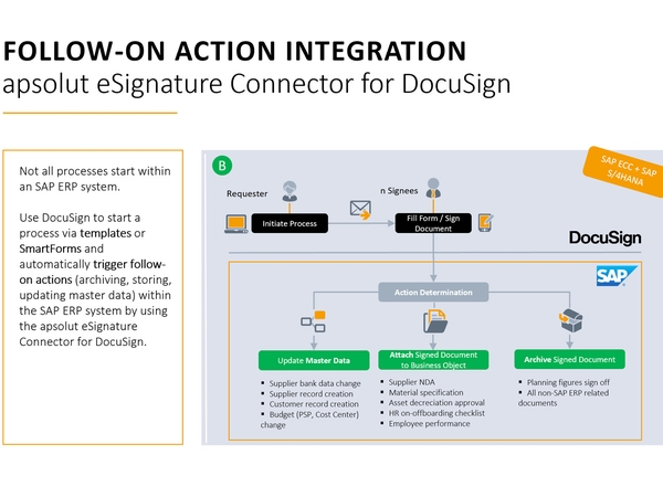And it goes even further: By integrating DocuSign with your SAP backend system, you automate the digital signing process many times over. Start the process and let the apsolut eSignature Connector do the work!